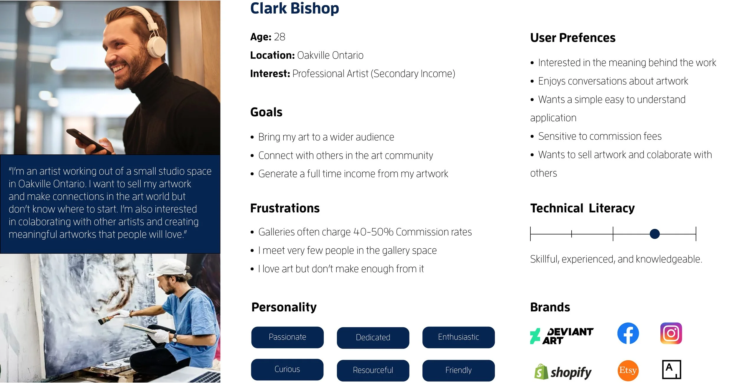 I built personas based on market research, for who would be the most likely candidates to engage with our platform. These would be used to great effect when informing the overall sitemap to limit user pains and aid in generating user gains. Ultimately providing a more pleasurable user experience. This is an essential goal for myself as a designer that employs a human centred design philosophy.